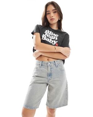 Baggy Medium Wash Denim High-Rise Long Shorts - Blue