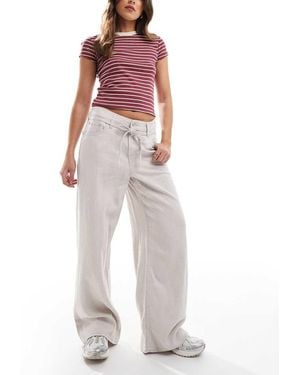 Xl Straight Linen Blend Trousers With Tie Waist - White