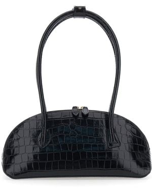 Shoulder Bag 'Ew Dome' With Round Top Handles And Crocodile-Ef - Black