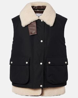 Shearling-Trimmed Cotton-Blend Vest - Black
