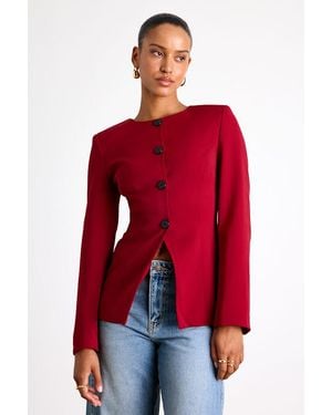 Elyna Button-Front Blazer - Red
