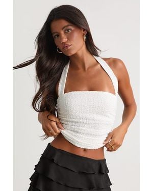Andressa Textured Knit Ruched Halter Top - White