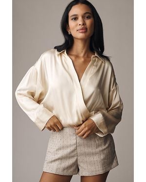 Long-Sleeve Satin Twofer Playsuit - Brown