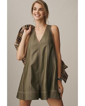 Faux-Leather Sleeveless Swing Playsuit - Brown