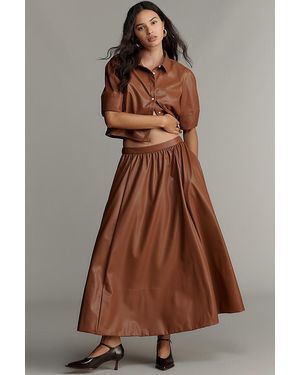 Faux-Leather Full Maxi Skirt - Brown