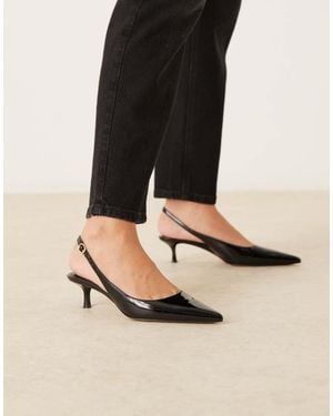 Faux Leather Pointed Low Heeled Slingback Shoes - Black