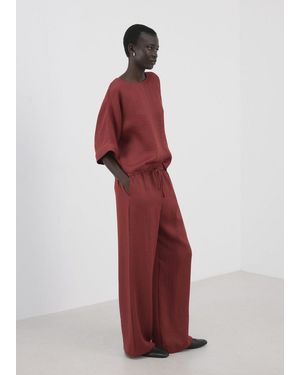Wool Mix Long Sleeve Ribbed Knitted Top - Brown