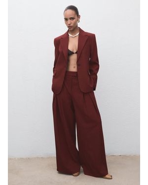 Wide-Leg Pleated Suit Trousers - Red