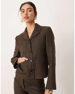 Wool Mix Short Tailored Jacket - Brown
