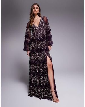 Fully Embellished Frill Maxi Dres - Brown