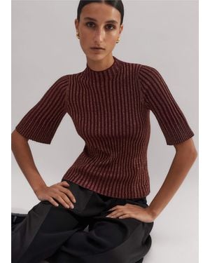 Fashioned Rib Metallic Knit Top Deep/Bronze - Brown
