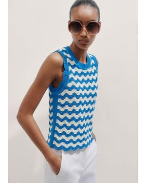 Cotton Scallop Stripe Boxy Knit Jumper Vest - Blue