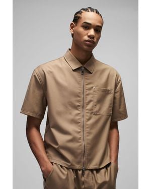 Tall Oversized Boxy Technical Stretch Revere Shirt & Comfort Short Set - Green