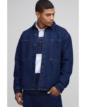 Tall Regular Fit Contrast Stitch Twill Boxy Overshirt - Blue