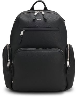 Italian-Leather Backpack With Zipped Side Pockets - Black