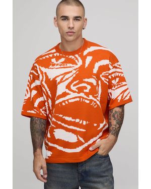 Oversized Jacquard Abstract Face Knitted T-Shirt - Orange