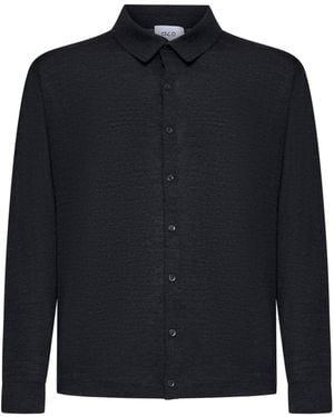 Charcoal Stretch Virgin Wool Blend Shirt Jacket - Black