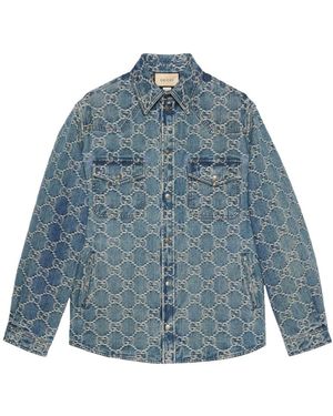 gg Supreme Monogrammed Denim Jacket - Blue