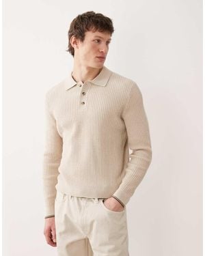 Wool Mix Quarter Zip Knitted Polo - Natural