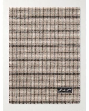 Appliquéd Checked Double-faced Wool-blend Scarf - White