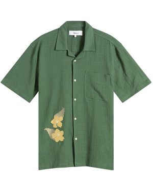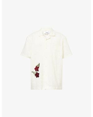 Checked Short-Sleeve Cotton And Linen-Blend Shirt - Blue