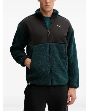 Colour Blocking Sherpa Jacket Contrasting Colours Lamb's Wool Stay Warm Sports Logo Creamy - Blue