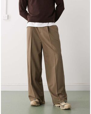 Oversized Tailored Trousers With Elasticated Waistband - Brown