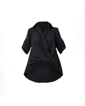 V-Neck Casual Top With Tulle Sleeves - Grey