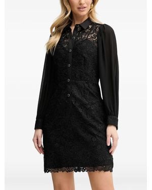 Lace Buttoned Mini Dress - Black