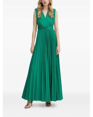 Pleated V-Neck Maxi Dress - Green