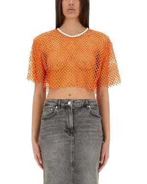 Cropped Mesh Top With Contrasting Neckline - Orange