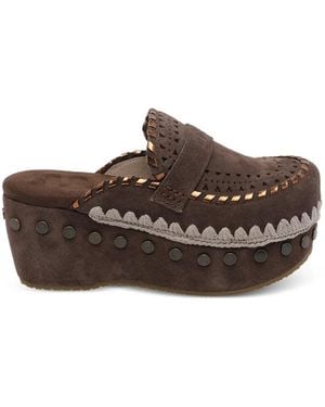 Mules En Daim Cloutées Découpées Au Laser - Brown