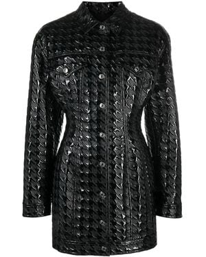 Embossed-Pattern Faux-Leather Shirt Jacket - Black