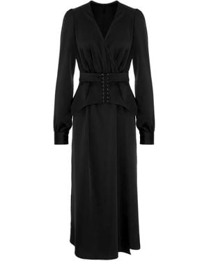 Mist Lace Belted Midi Dress - Black