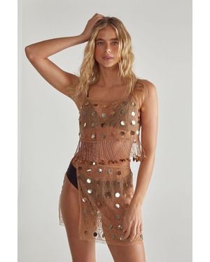 Burnt Sequin Mini Beach Skirt - Natural