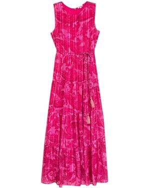 Vertical Striped Midi Dress With Embroidered Detail And Belt - Pink