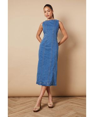 Sleeveless Denim Maxi Dress With Seam Detail - Blue