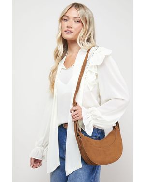 Relly Faux Suede Half Moon Crossbody Bag - Natural