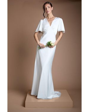 Deep V Fluted Sleeve Maxi Wedding Dress - Brown