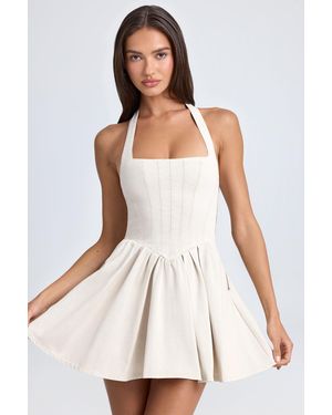 Halterneck Corset Micro Mini Dress - Natural