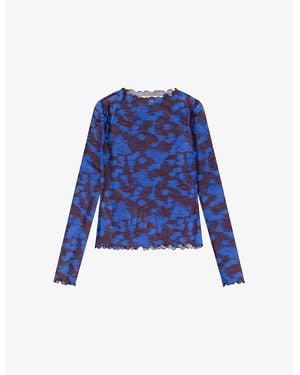 Lorrie Mesh Leaf-Print Stretch-Mesh Top - Blue