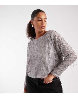 Sequin Detail Crop Top - Grey