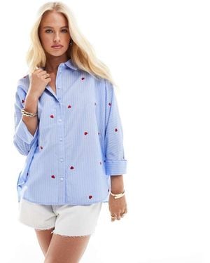 Heart Embroidery Shirt - Blue