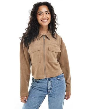 Contrast Stitch Cropped Faux Suede Jacket - Blue
