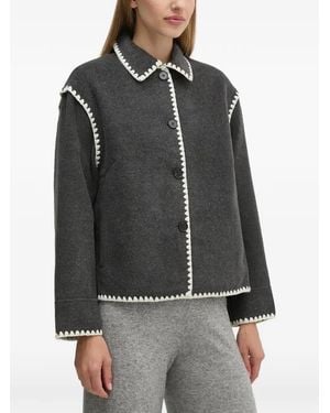 Contrast-Trim Button Jacket - Black