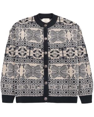 Flora O-Neck Jacquard Knit Jacket - Black