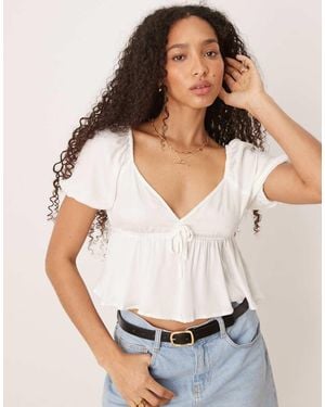 Tie Front Puff Sleeve Peplum Blouse - White