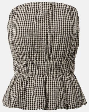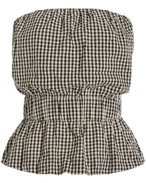 Mira Strapless Cropped Gingham Bandeau Top - Black