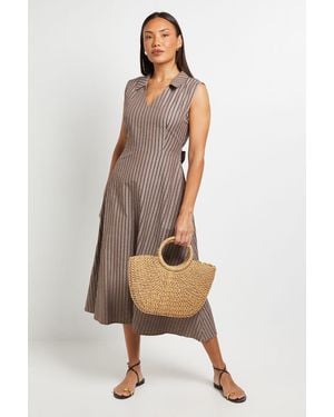 Stripe Tie Sleeveless Midi Dress - Natural
