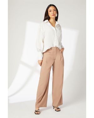 Belt Detail Cotton Blend Straight Leg Trouser - Brown